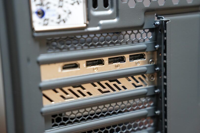 グラボ側の端子はHDMIが1つ、DisplayPortが3つ。