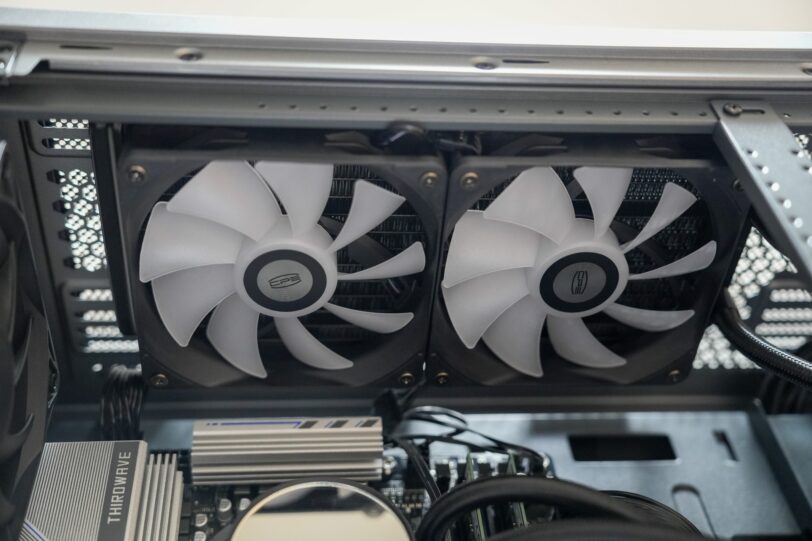 内部のファンは、背面・天面・前面にそれぞれ搭載。