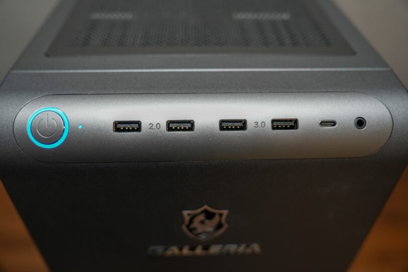 旧モデルからデザインが激変したガレリアのゲーミングPCですが、アクセスしやすいよう斜めに設けられたインターフェースは健在。