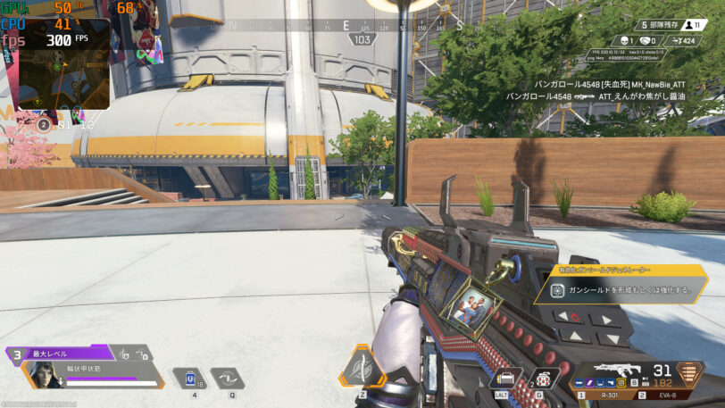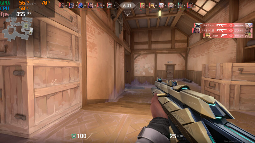 途中ゲーム内で雨が降ったものの、変わらず240fpsを維持しており非常に快適に遊ぶことができました。