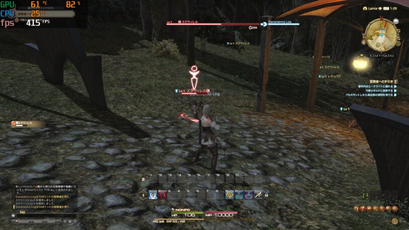 最高品質でもフレームレートはそこまで落ち込むことが無かったものの、エフェクトやプレイヤーが多い場所では処理の関係でここまで高フレームレートは出ないので注意。